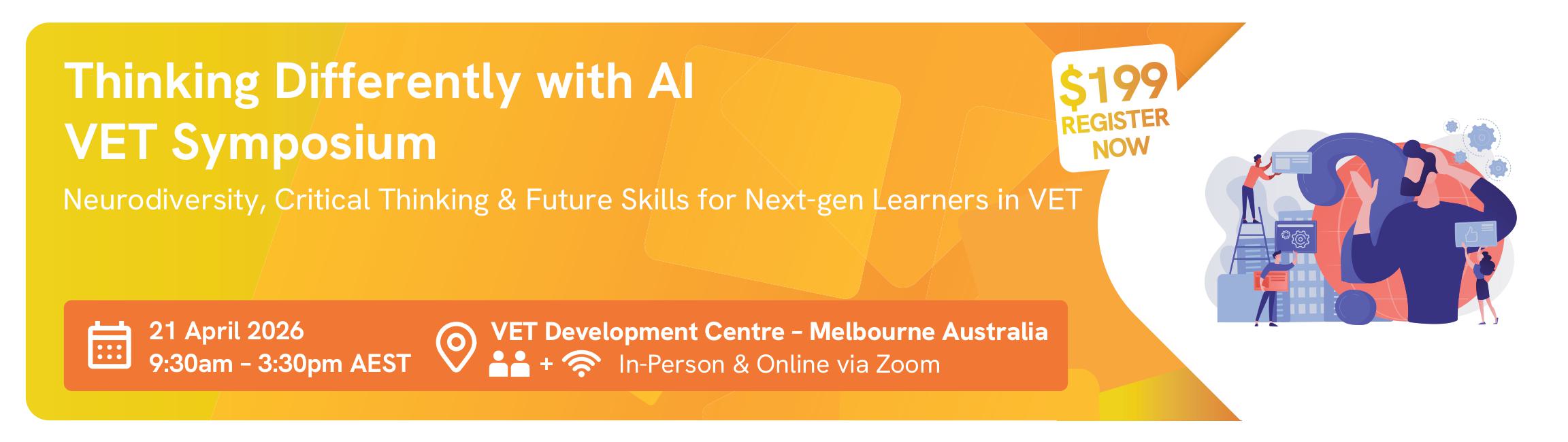 The Thinking Differently with AI: Neurodiversity, Critical Thinking & Future Skills for Next-gen Learners in VET Symposium brings together leading educators, industry experts and researchers from across Australia to explore practical, inclusive and future‑focused solutions to one of VET’s most urgent capability gaps.